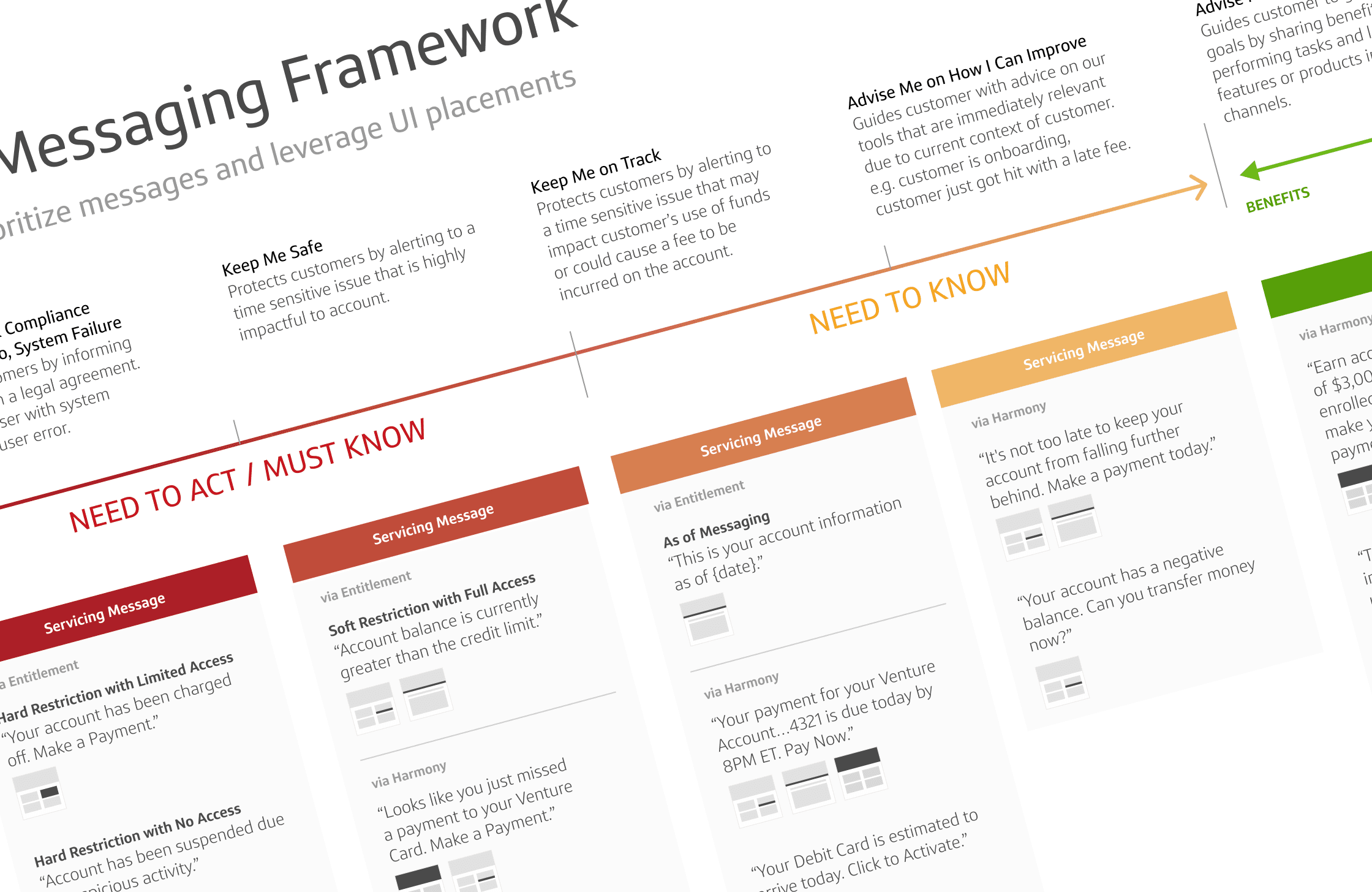 This example highlights the results of a design workshop that focused on defining inputs into a research testing plan for the messaging framework within the Capital One servicing experience.