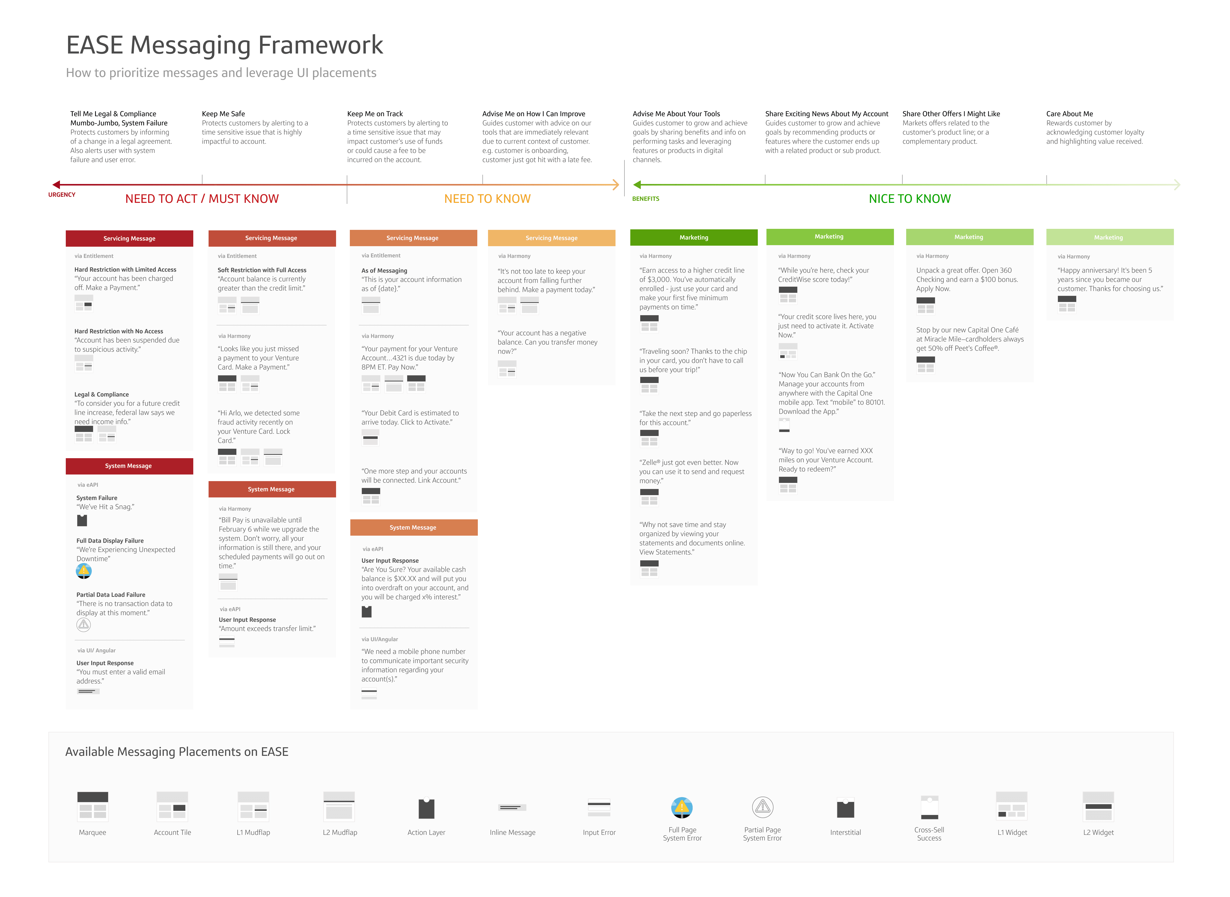 The intelligent messaging framework establishes the insight anatomy and provides placement guidance for messaging within Capital One's servicing platform.
